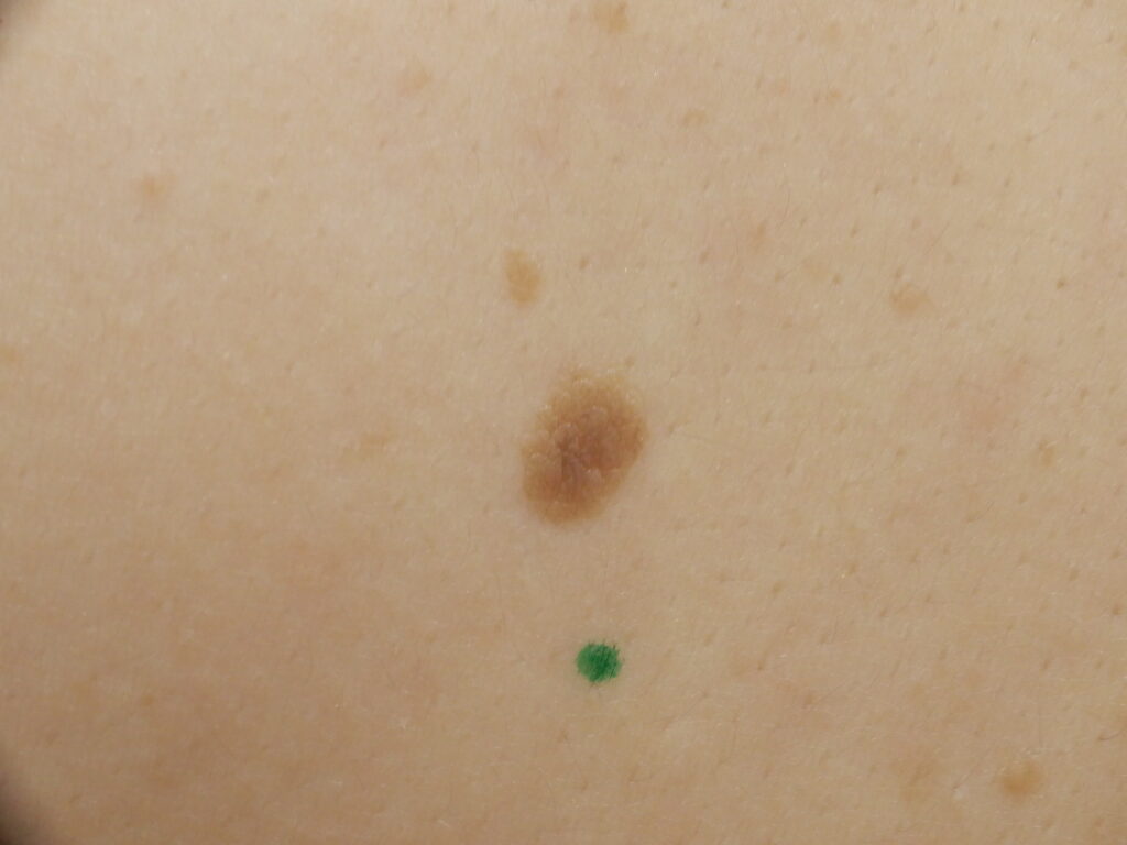 日光黒子(老人性色素斑)と同様に、長期にわたって浴びた紫外線の影響が大きいと考えられます。黒色で隆起することもありますが、平坦な場合はシミとの区別が難しい。良性腫瘍に分類され、放置しても自然消失することはありません。ピコレーザー治療が無効のため、他の方法で治療する必要があります。